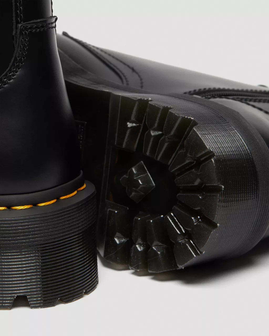Stai cercando qualcosa di audace? L'hai trovato. Il nostro stivale Jadon porta con sé 6 decenni di DNA Dr. Martens: un modello che non ha paura di farsi notare grazie alla sua imponente suola platform. Ispirata al nostro Original a 8 occhielli, lo stivale Jadon è realizzato in pelle Polished Smooth, che puoi lucidare a nuovo o lasciare che mostri i segni del tempo. L'inimitabile suola Quad presenta un motivo scanalato ed è rifinita dalle nostre caratteristiche cuciture gialle. Sul tallone, l'immancabile linguetta nera e gialla. Lo stivale presenta anche una comoda cerniera laterale. Qualunque sia il look, scegli di essere audace.